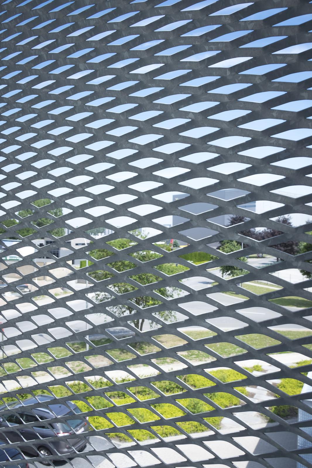 Metalen bekleding en metalen leuningen met strekmetaal Lagun 110 S (warm verzinkt staal) te Aalter.
