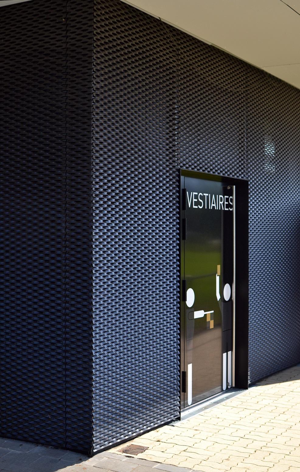 Metaalgevelbekleding met strekmetaal Shadow 115 M (aluminium + RAL 9005) te Pétange.