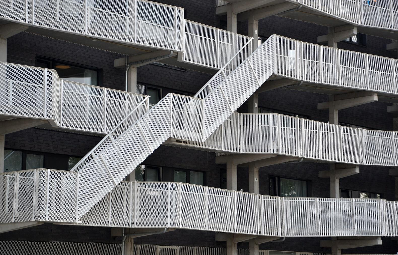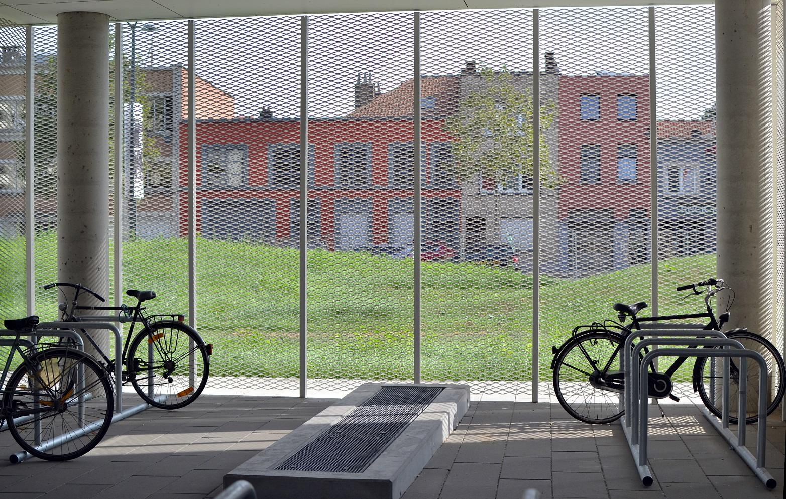 Metaalgevelbekleding met strekmetaal Zephir 115 XS (aluminium + RAL 9010 mat) te Brussel.